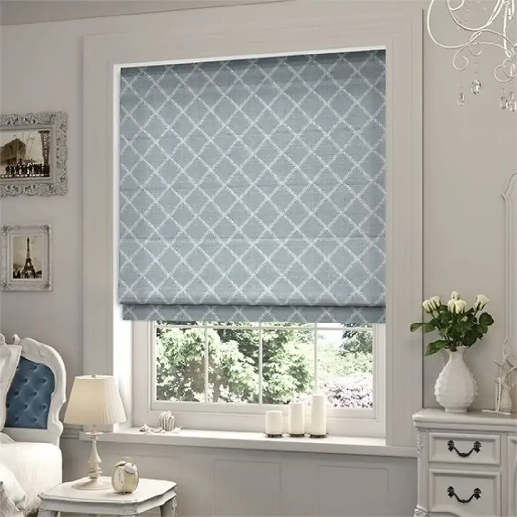_Roman blinds with a subtle geometric pattern, offering elegant window coverage and light control._